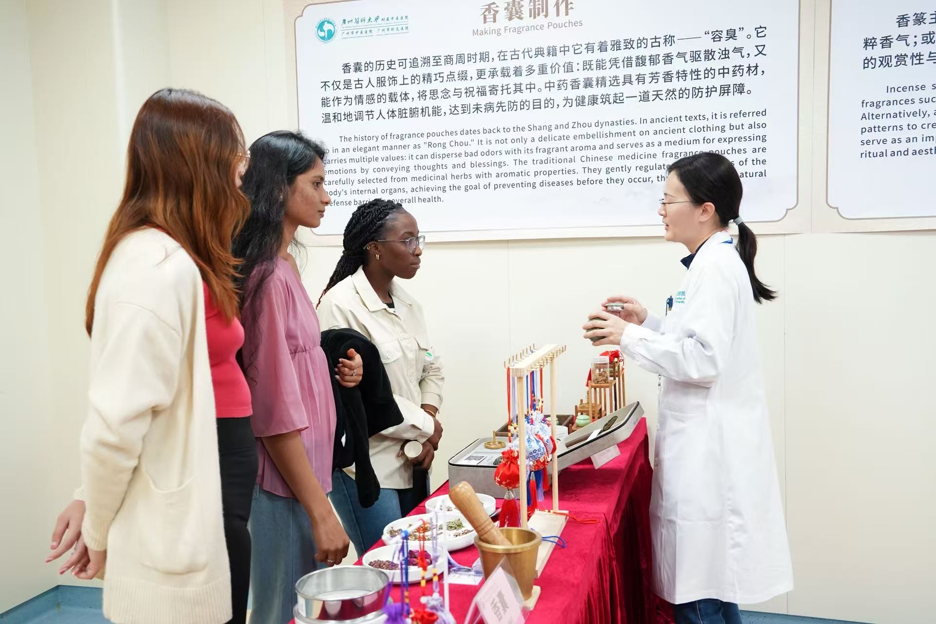 2025级谢伊代·艾买尔江:印象最深的是做中药香囊这一项目——亲手搭配草本原料,我感受到中医药“药香养身”的实用与趣味。
