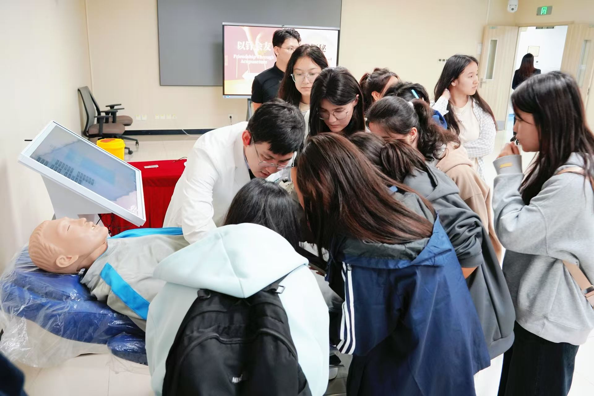 学生在实训中心学习针灸知识