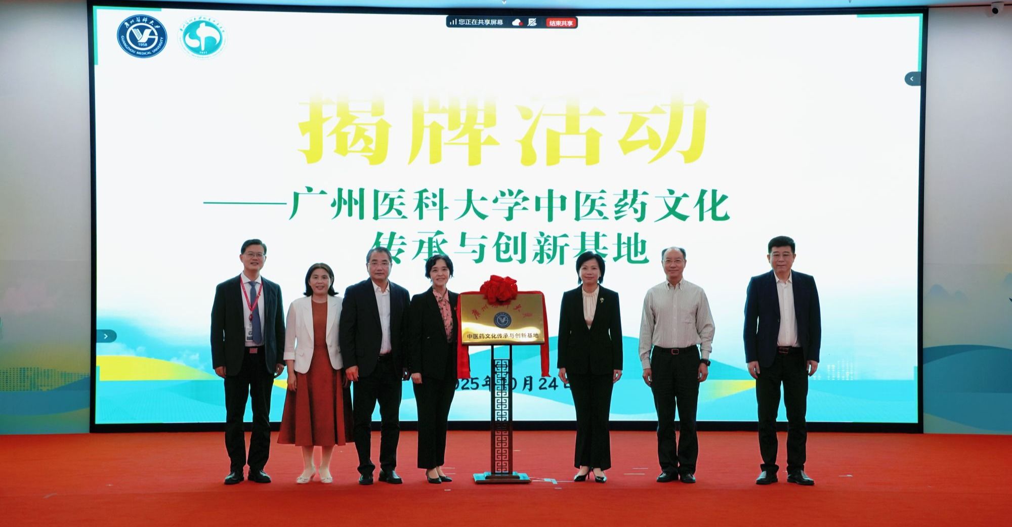 10月24日,广州医科大学中医药文化传承与创新基地揭牌仪式在附属中医医院天河院区举行。广州市卫生健康委员会、广州医科大学有关领导,师生代表参加活动,共同见证这一重要时刻,为中医药文化的传承与发展翻开崭新篇章。