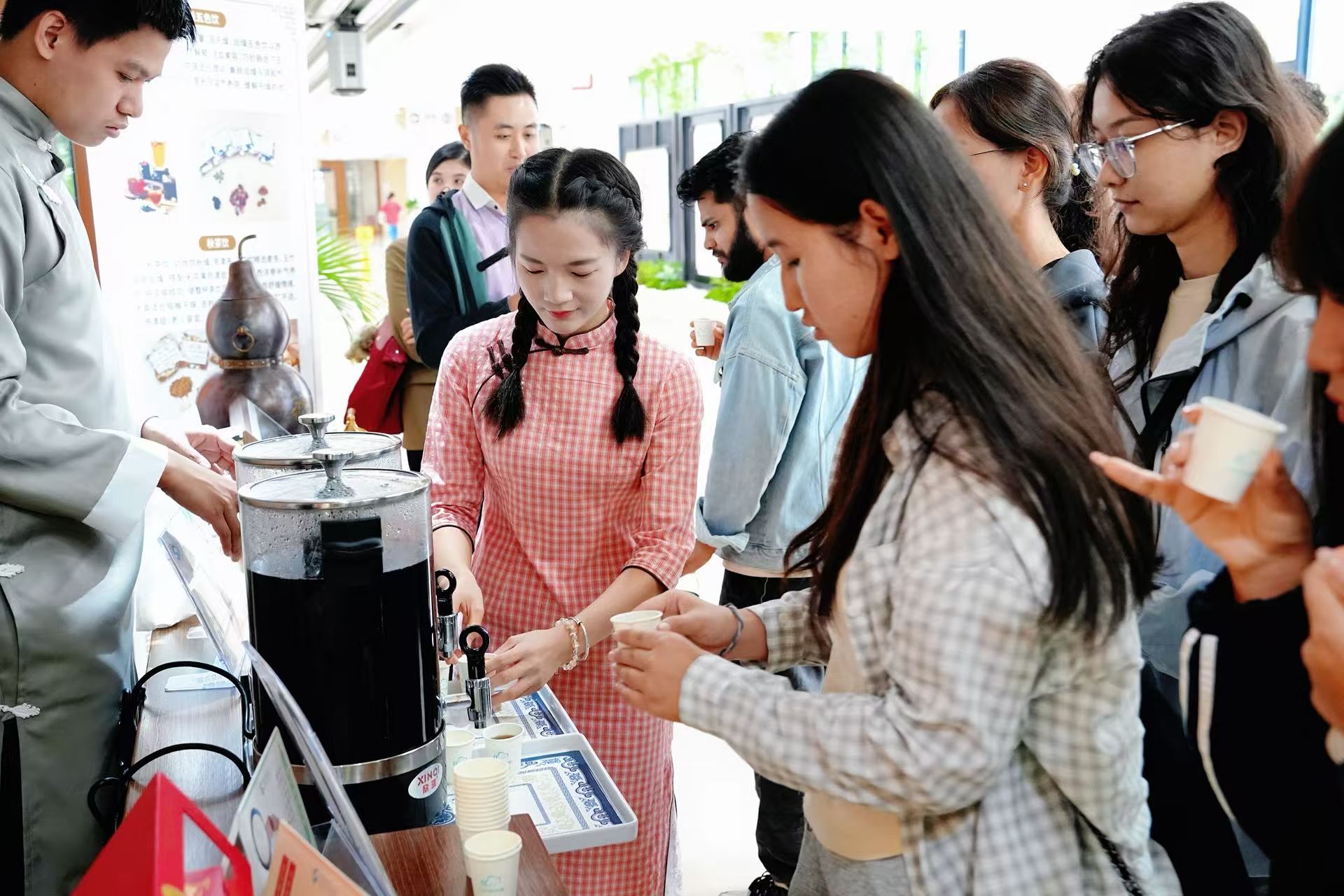 学生品尝凉茶茶饮