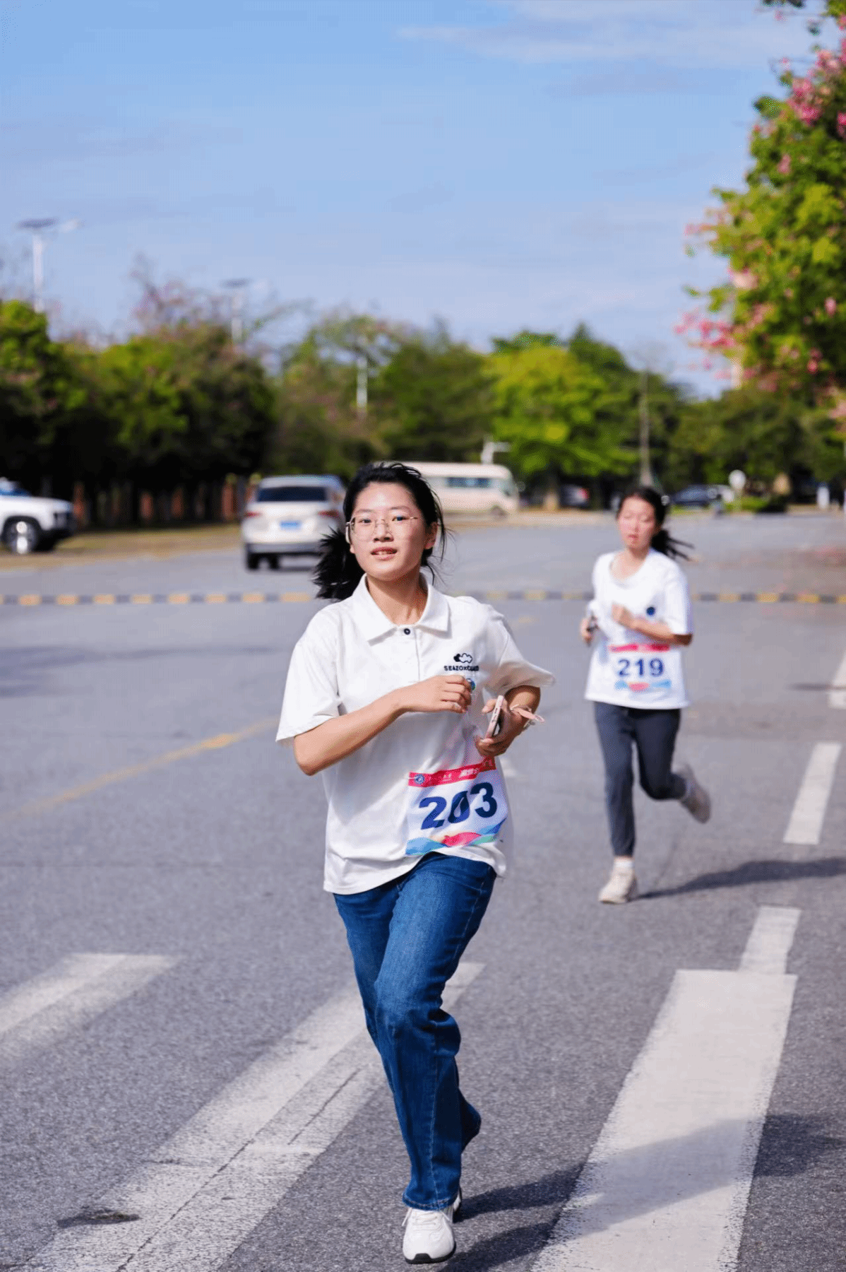 学校党委书记曾颖如、学校副校长周麟为比赛起跑发出第一枪,青春校园跑正式拉开帷幕。参赛运动员们如离弦之箭,沿着规定路线出发。路旁的啦啦队的加油欢呼声,为奔跑的运动员们注入满满动力。