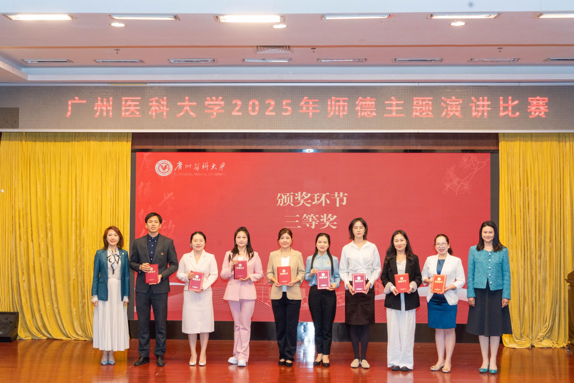 为深入学习贯彻习近平新时代中国特色社会主义思想,大力弘扬教育家精神,激励广大教师践行立德树人初心使命,广州医科大学于2025年12月31日下午在番禺校区举行了首届师德主题演讲比赛。经过激烈比拼和评委现场评审,附属第三医院碗旭照、附属第一医院谭愈昱荣获一等奖。