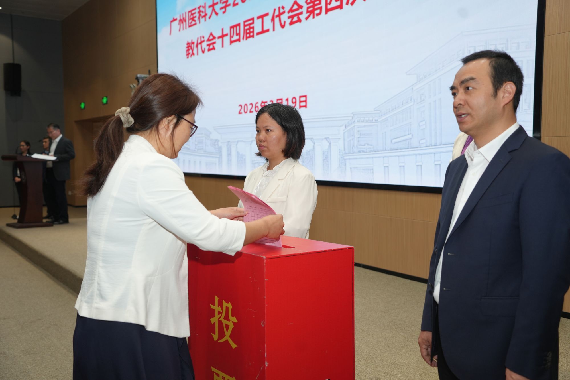 3月19日,学校2026年工作会议暨第八届教代会十四届工代会第四次会议于番禺校区召开。会议审议讨论学校年度工作报告、学校财务2025年决算和2026年预算报告、学校工会年度工作报告、学校工会财务2025年决算和2026年预算报告、《广州医科大学“十五五”事业发展规划(草案)》等文件,替补选举学校工会第十四届委员会委员,并通过《广州医科大学第八届教代会暨第十四届工代会第四次会议决议》。