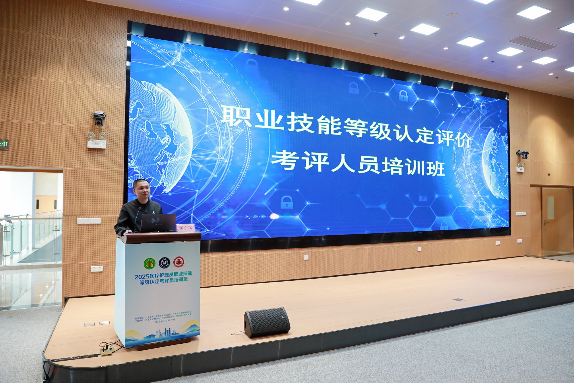 为贯彻落实国家及广东省关于职业技能等级认定工作的政策部署,加强医疗护理员考评员队伍建设,10月25日至26日,由广东省人力资源和社会保障厅、广东省卫生健康委员会指导,广州医科大学联合广东省护理学会、深圳职业技术大学主办的 “2025年医疗护理员职业技能等级认定考评员培训班” 在我校番禺校区举办。