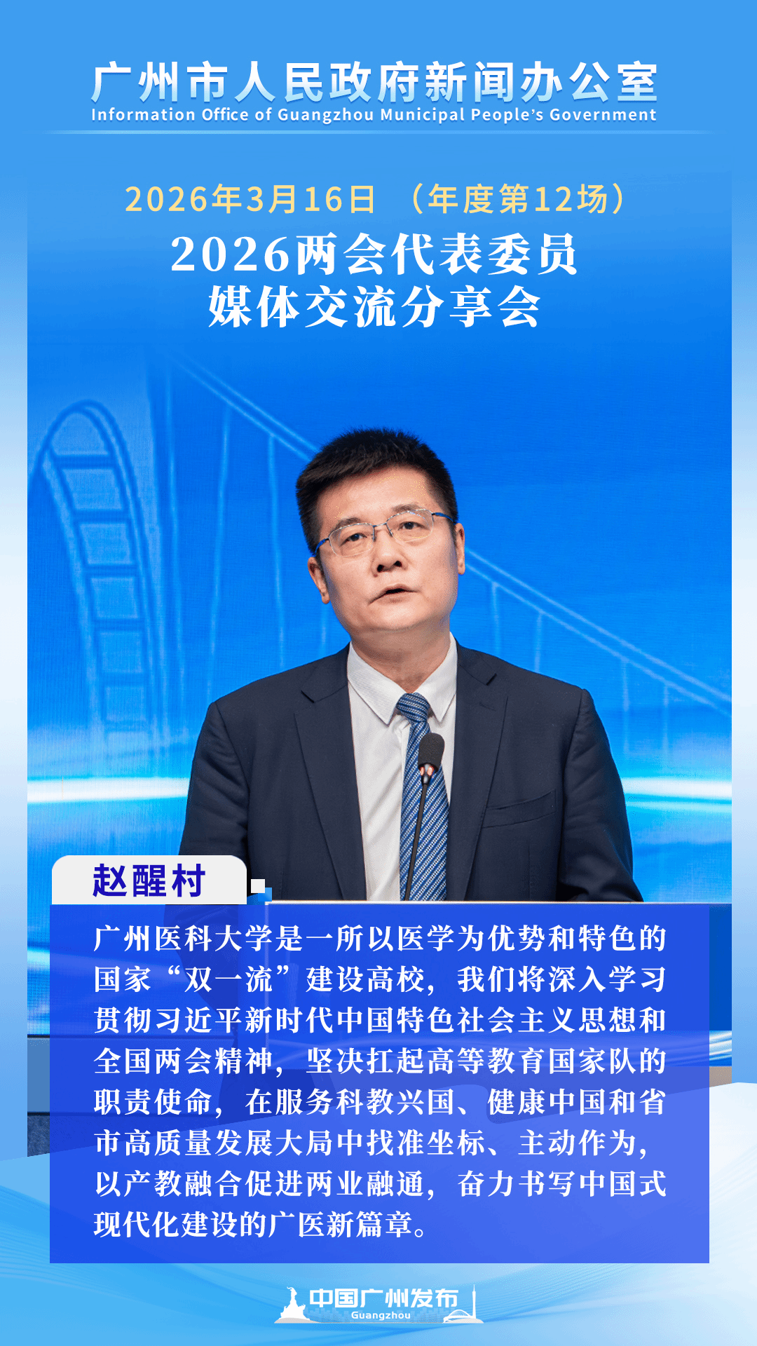 春潮涌珠江,实干赴新程。3月16日,广州市人民政府新闻办公室召开2026两会代表委员媒体交流分享会。代表委员齐聚一堂,立足本职工作,结合履职实践,分享贯彻落实全国两会精神的具体举措和今后发展方向。
