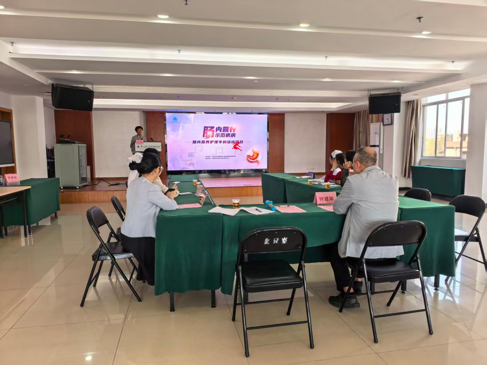 针对医院在肠内营养工作中存在的困惑,纪玉桂主任以《肠内营养护理并发症的处理》为题作专题报告。她以肠内营养护理并发症处理为切入点,系统阐释了肠内营养示范病房的建设路径,并结合临床实际,详细讲解了营养筛查与评定、营养通路建立与维护、营养液输注规范等核心内容。授课内容既有政策高度,又有实践深度,为与会人员提供了宝贵的理论指导与实践启示。
